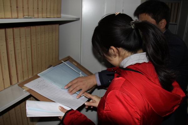 孔繁玉等一行人首先聽(tīng)取了曹厚勝關(guān)于城建集團(tuán)檔案管理工作自查報(bào)告,實(shí)地查看了檔案閱覽室和檔案庫(kù)房,對(duì)檔案管理材料進(jìn)行了認(rèn)真審閱??追庇裾J(rèn)為,城建集團(tuán)檔案工作具備了省二級(jí)檔案室標(biāo)準(zhǔn),在檔案管理鞏固完善、深化提高、開(kāi)拓創(chuàng)新上狠下功夫,基本實(shí)現(xiàn)了檔案管理規(guī)范化、標(biāo)準(zhǔn)化、制度化、信息化、科學(xué)化,希望城建集團(tuán)在今后的檔案管理工作,進(jìn)一步完善和提高,查遺補(bǔ)缺、不斷健全,朝著更高的目標(biāo)前進(jìn)。